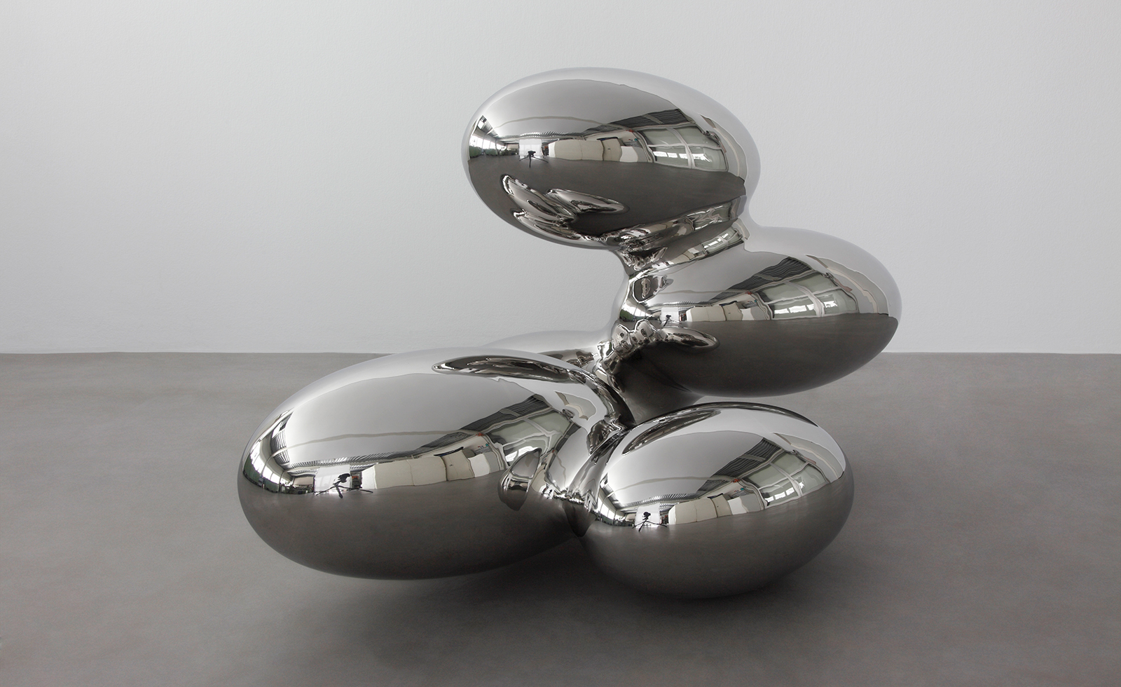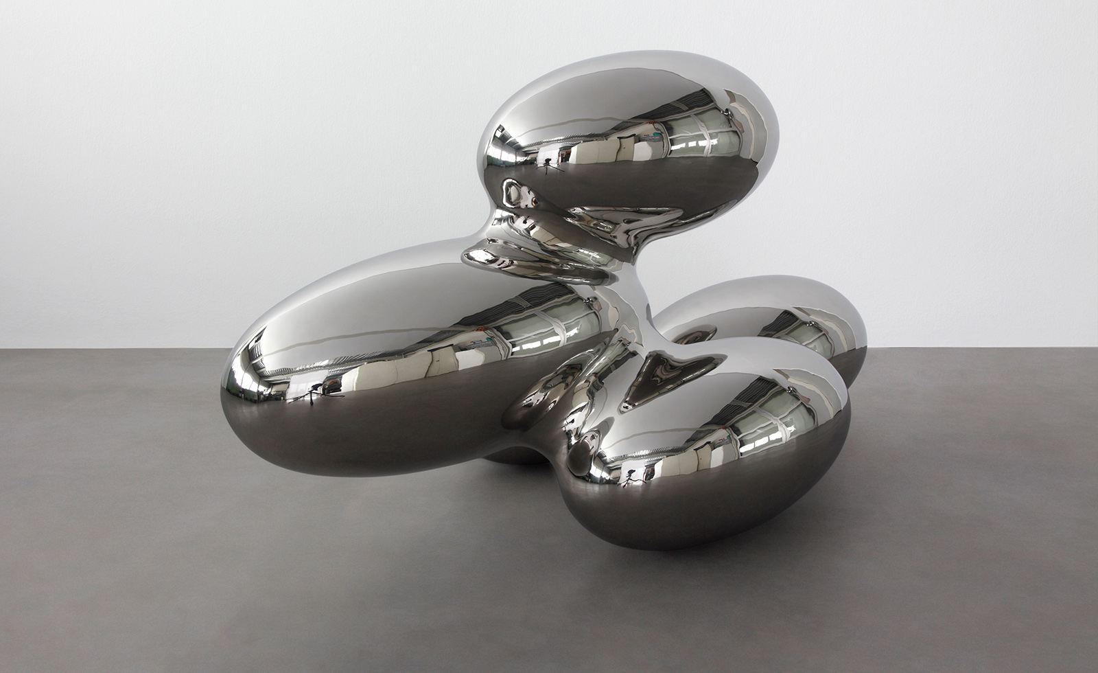 Die hochglanzpolierten Edelstahl Objekte widerspiegeln sich selbst, den Betrachter und den Raum, durch deren Form gekrümmt; auch hier eine Analogie zur Astronomie.