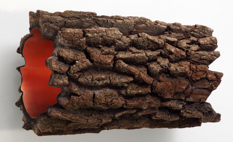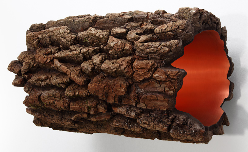 Die Spaceships erfüllen auf den ersten Blick nicht die Erwartungen, die dieser auf Raumfahrt oder Science-Fiction verweisende Titel weckt. Frontal betrachtet, erscheinen die länglichen Körper wie Fragmente eines realen mächtigen Baumstamms mit stark strukturierter, knorriger Rinde. Die Überraschung zeigt sich, wenn man sich die Schnittflächen der Stämme anschauen will und stattdessen mit Kupfer ausgeschlagene Röhren vorfindet, die irreal, von rötlichem Licht erfüllte Räume im Inneren der vermeintlichen Naturgegenstände öffnen. Borers Spaceships führen biologische und technische Form so zusammen, dass keine reale Synthese, sondern ein handfestes Paradoxon entsteht, das die Vorstellung des Betrachters nachhaltig irritiert.